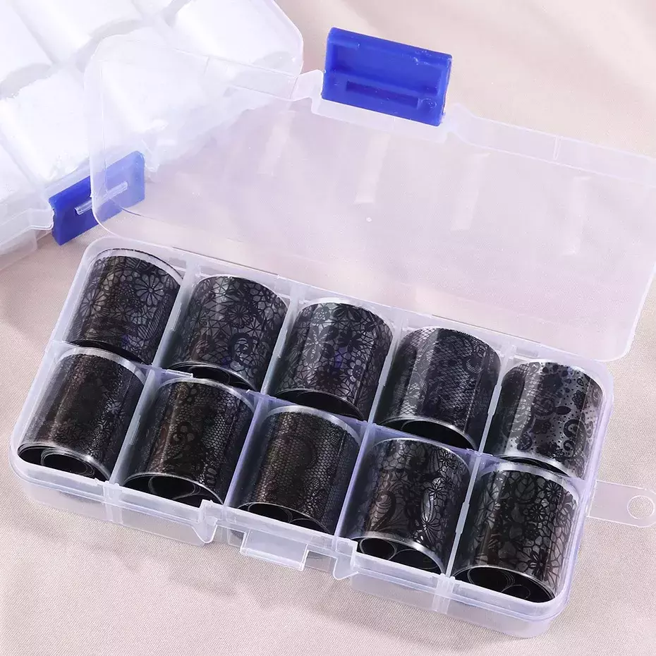 Transforme suas unhas em verdadeiras obras de arte com o Conjunto de Transferência de Arte de Unhas! Este conjunto incrível vem com 10 rolos em branco e preto, perfeito para criar designs elegantes e sofisticados.
