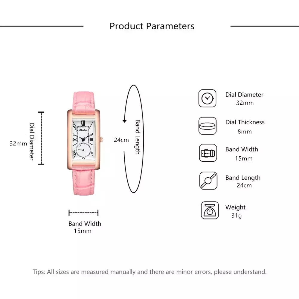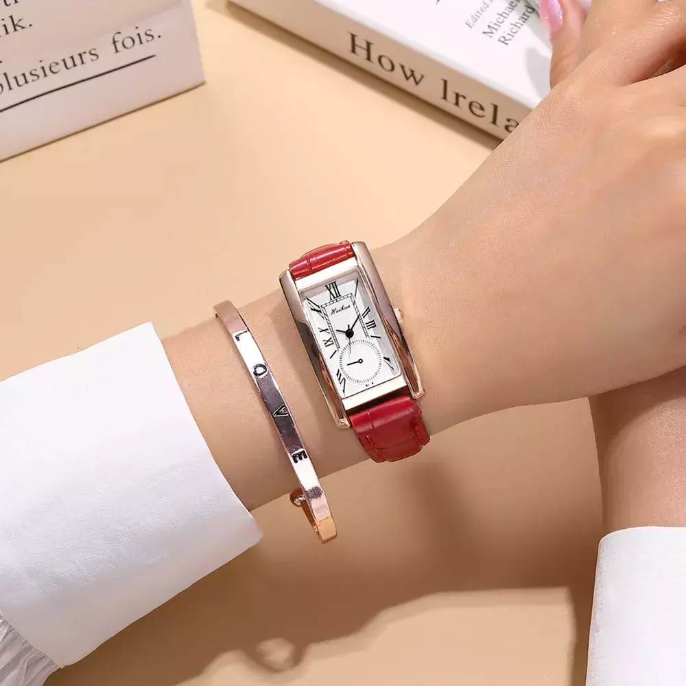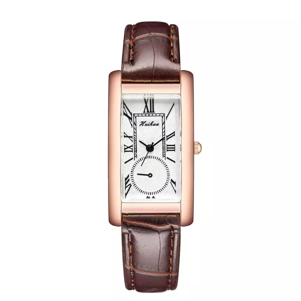 Palavras-chave: relógio feminino, cinto fino, retângulo, quartzo, casual, numerais romanos, moda 2025, acessório feminino.