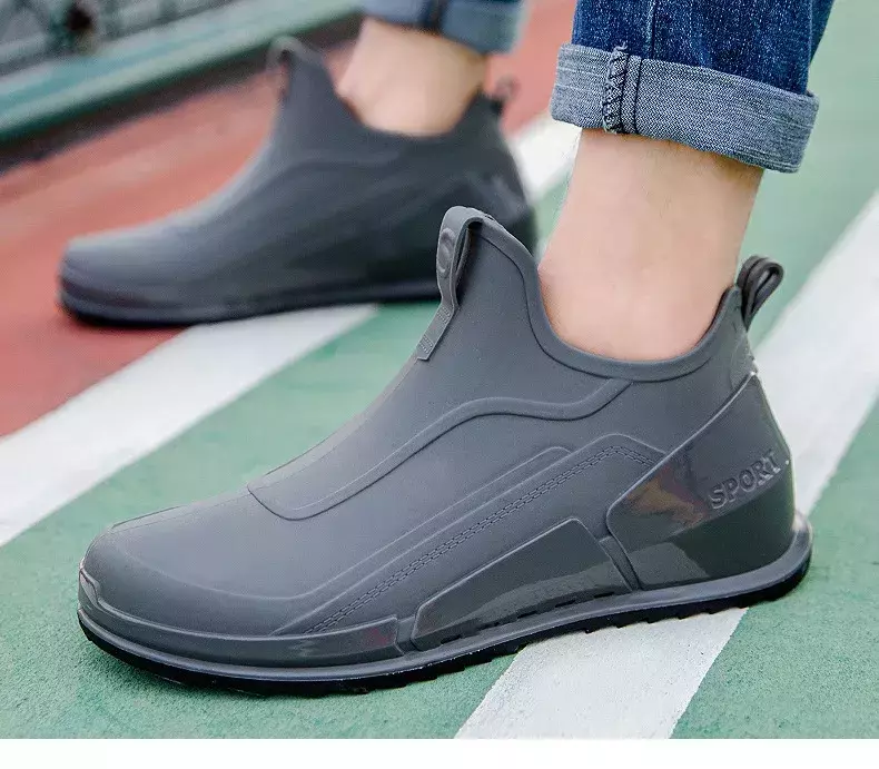 2023 Botas de tubo curto masculino Botas de chuva de cor sólida Masculino Sapatos de pesca impermeáveis Homens Sapatos de trabalho antiderrapante Ao Ar Livre Rainboots novo