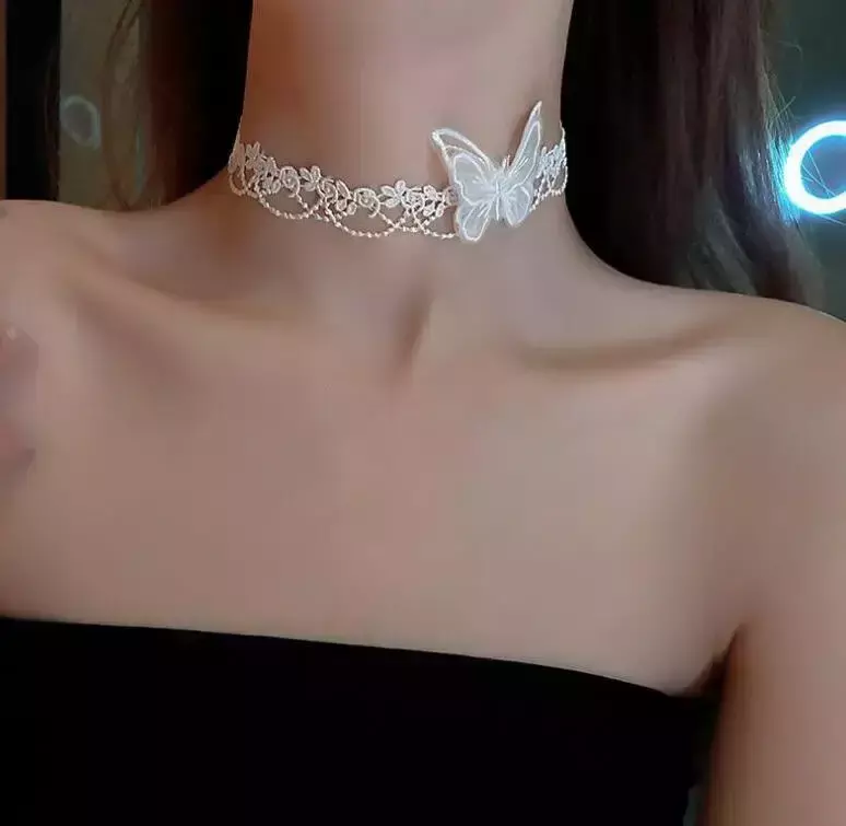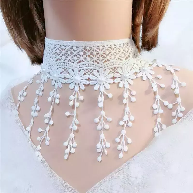 Colar de Pingente Branco Gótico para Mulheres - Gargantilha de Renda