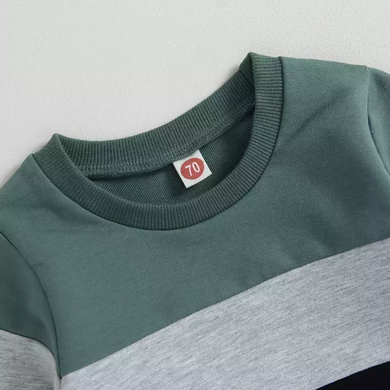 Baby Boys Spring 2 Piece Outfits Contraste Cor Camisola de Manga Longa e Calças Elásticas para Toddler Fall Clothes