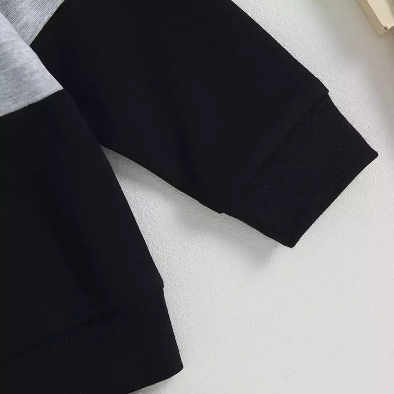 Baby boy moletom apresenta cores contrastantes, gola redonda, mangas compridas. Meninos track calças com bolsos e cintura elástica são perfeitos para a queda e vai manter seu filho quente e confortável ao ser elegante.