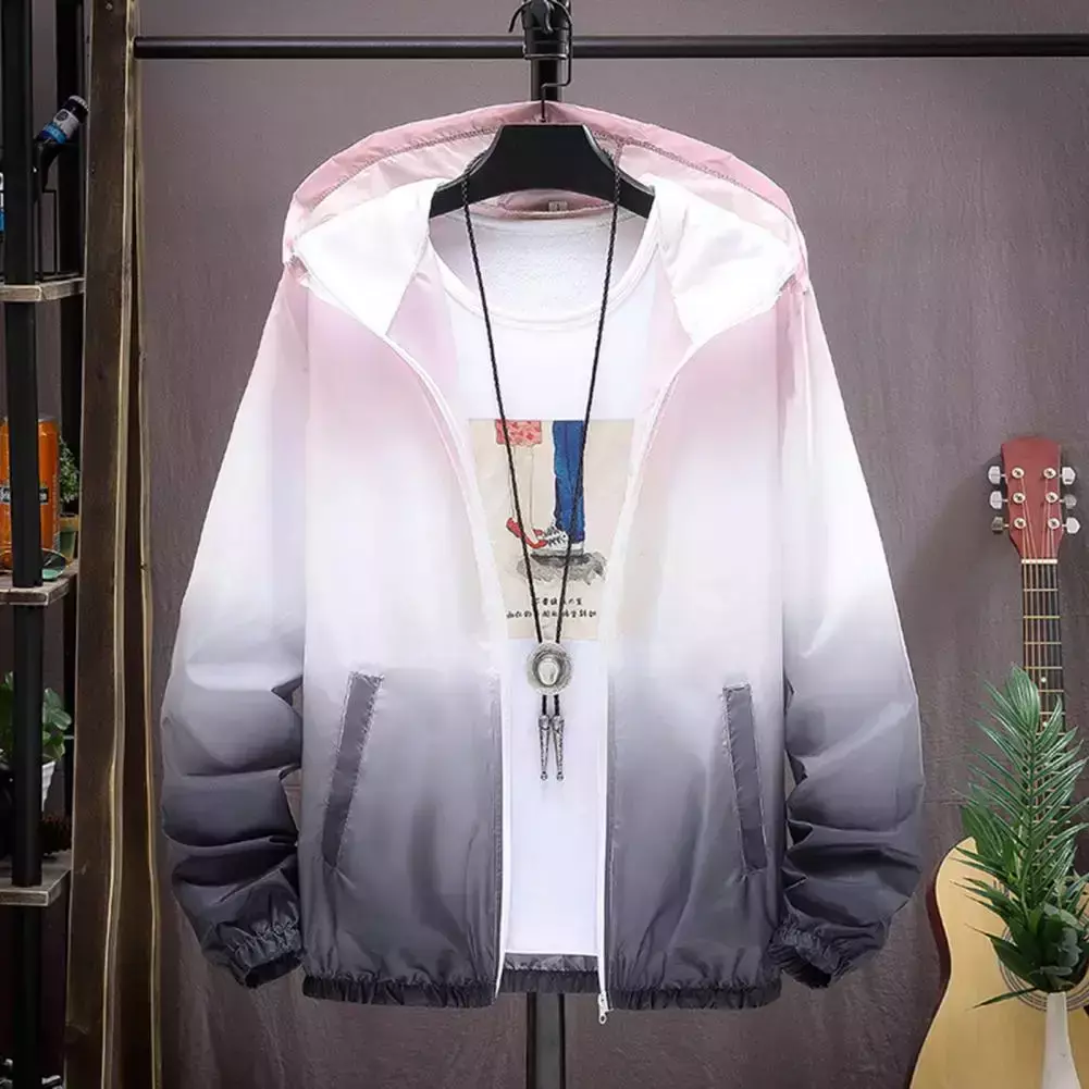 Jaqueta Gradiente de Cor Masculina com Capuz – Estilo e Proteção em um Só Produto