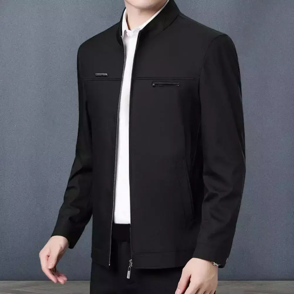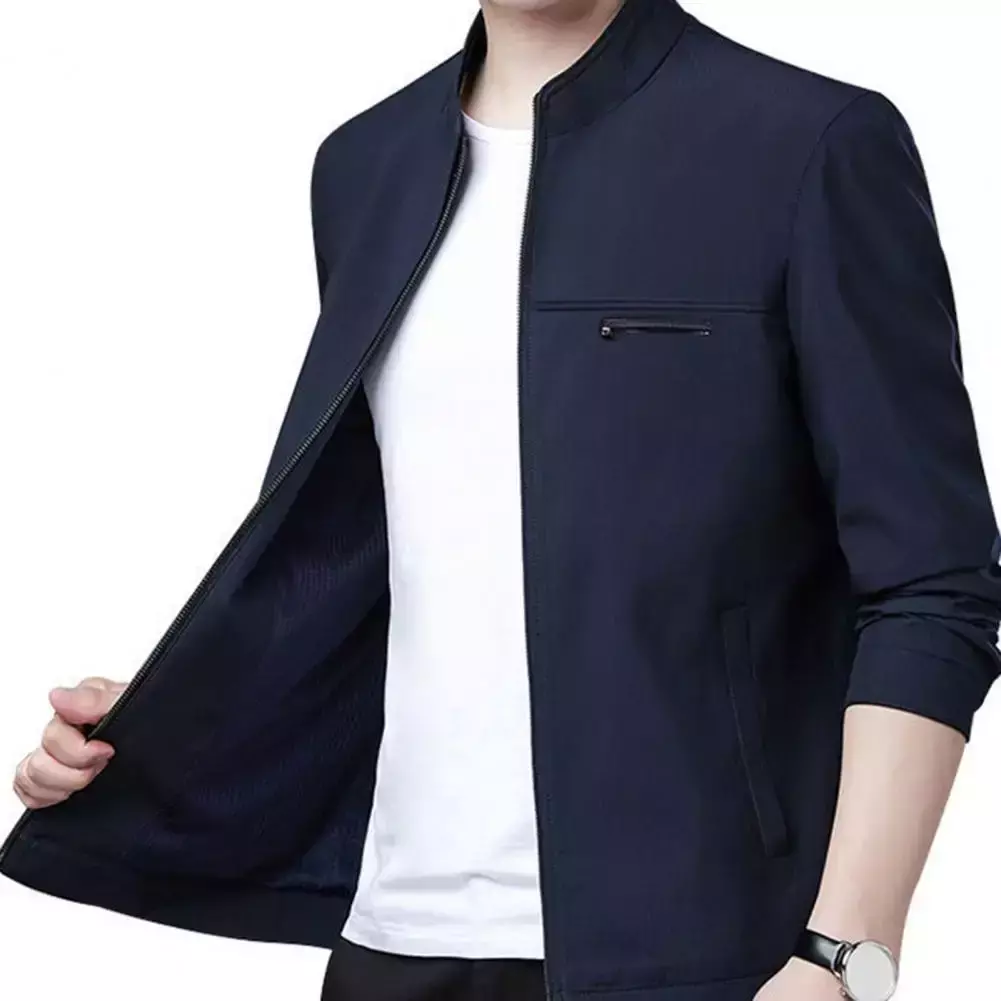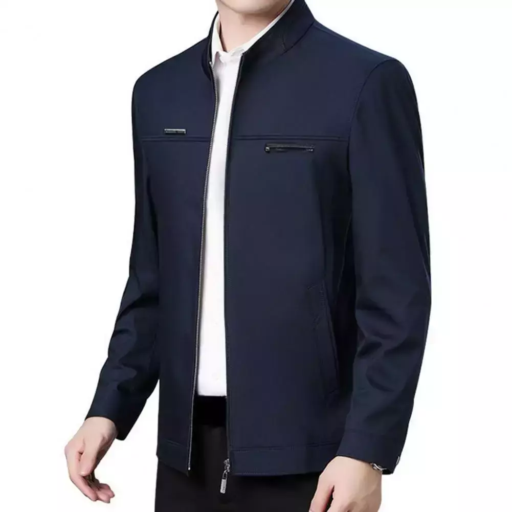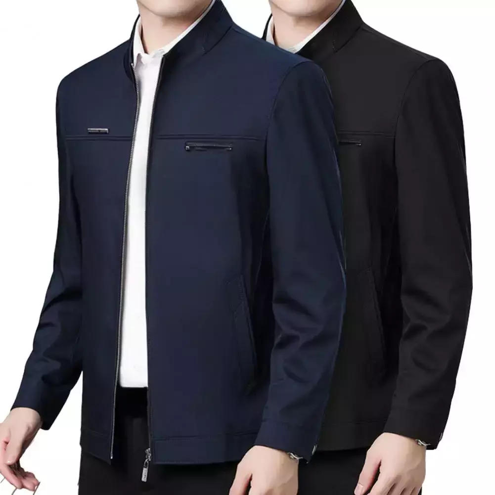 Homens Primavera Outono Casaco Stand gola pai de meia idade jaqueta cor sólida manga longa suave fechamento do Zipper quente negócio estilo bolsos homens jaqueta de inverno