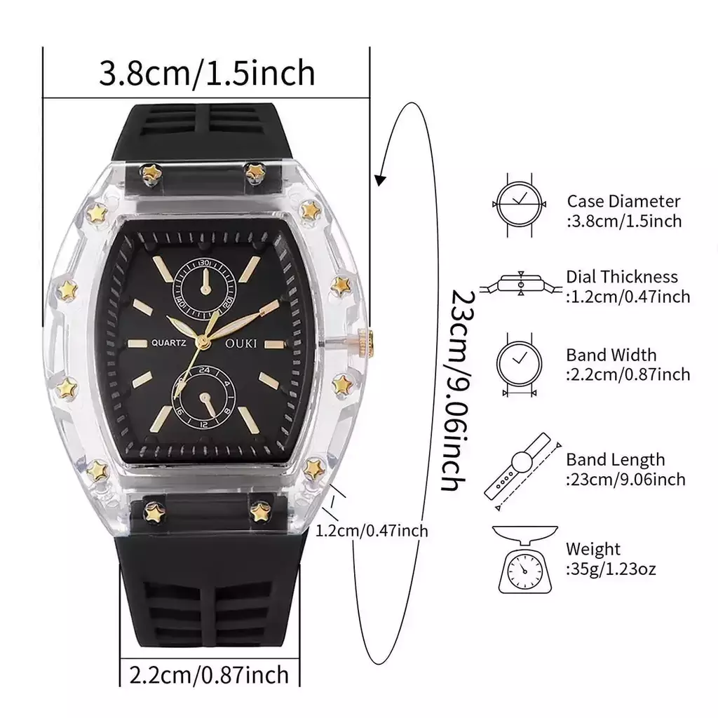 Garanta já o seu relógio casual feminino com pulseira de silicone e movimento de quartzo! Seu novo aliado em estilo e funcionalidade espera por você.