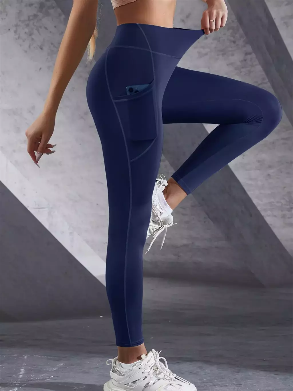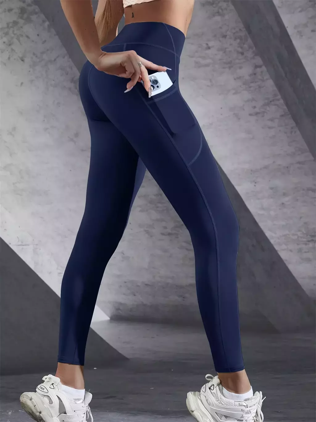 Nova Cintura Alta Leggings Femininas Estiramento Calças de Yoga Collants com Bolço