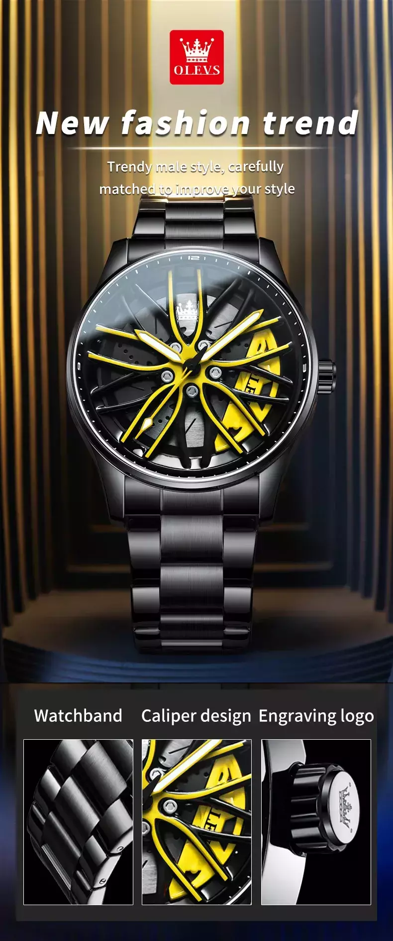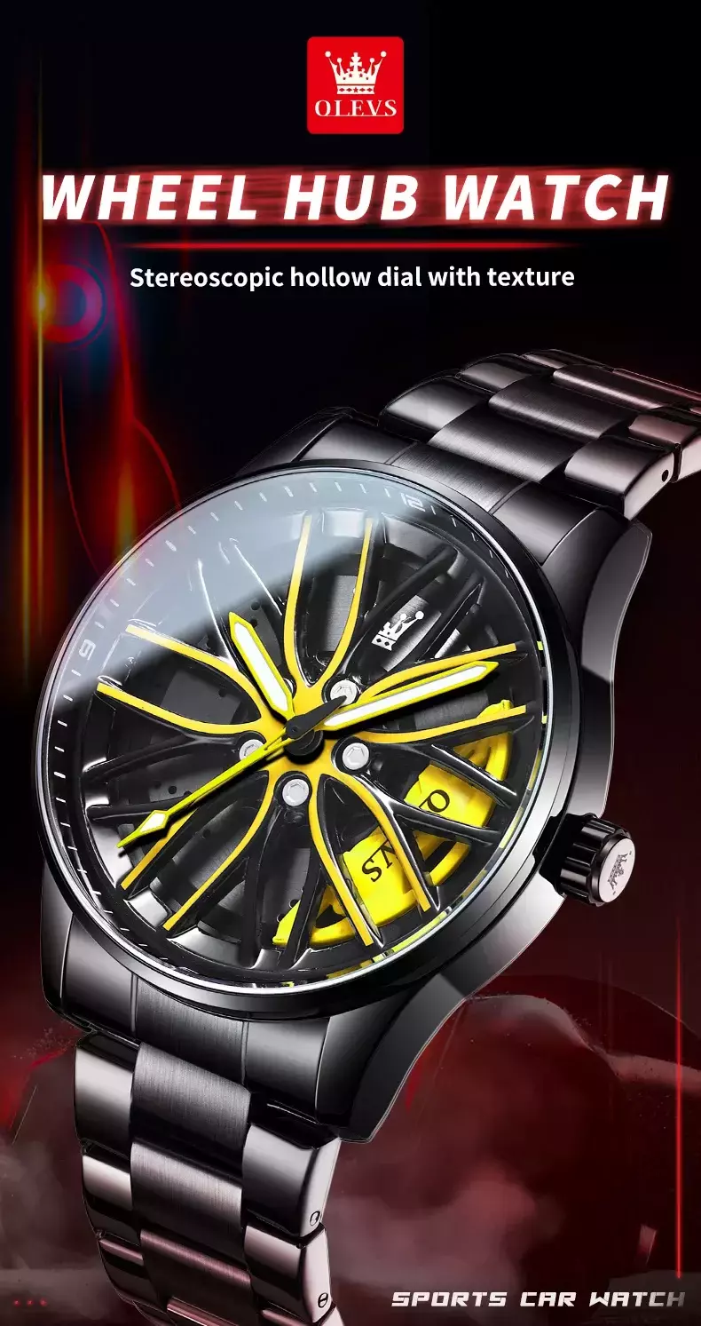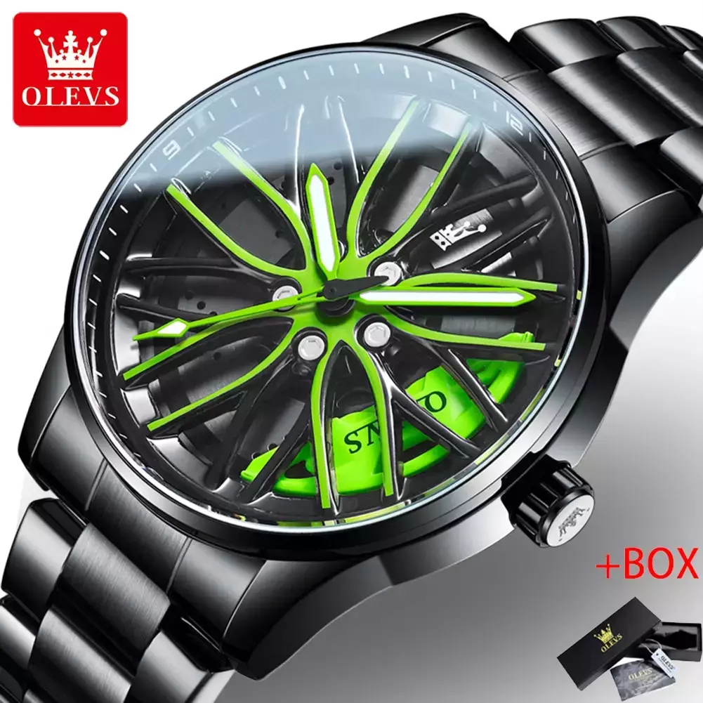 Adicione o Olevs rotação aro hub esportes carro relógio masculino ao seu guarda-roupa e eleve seu estilo com um toque de performance e elegância.