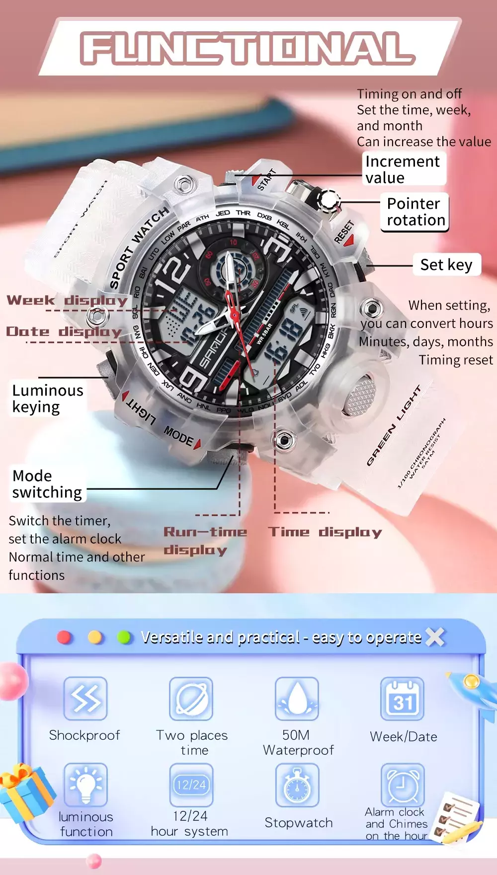 Water Resistance Depth: 5Bar