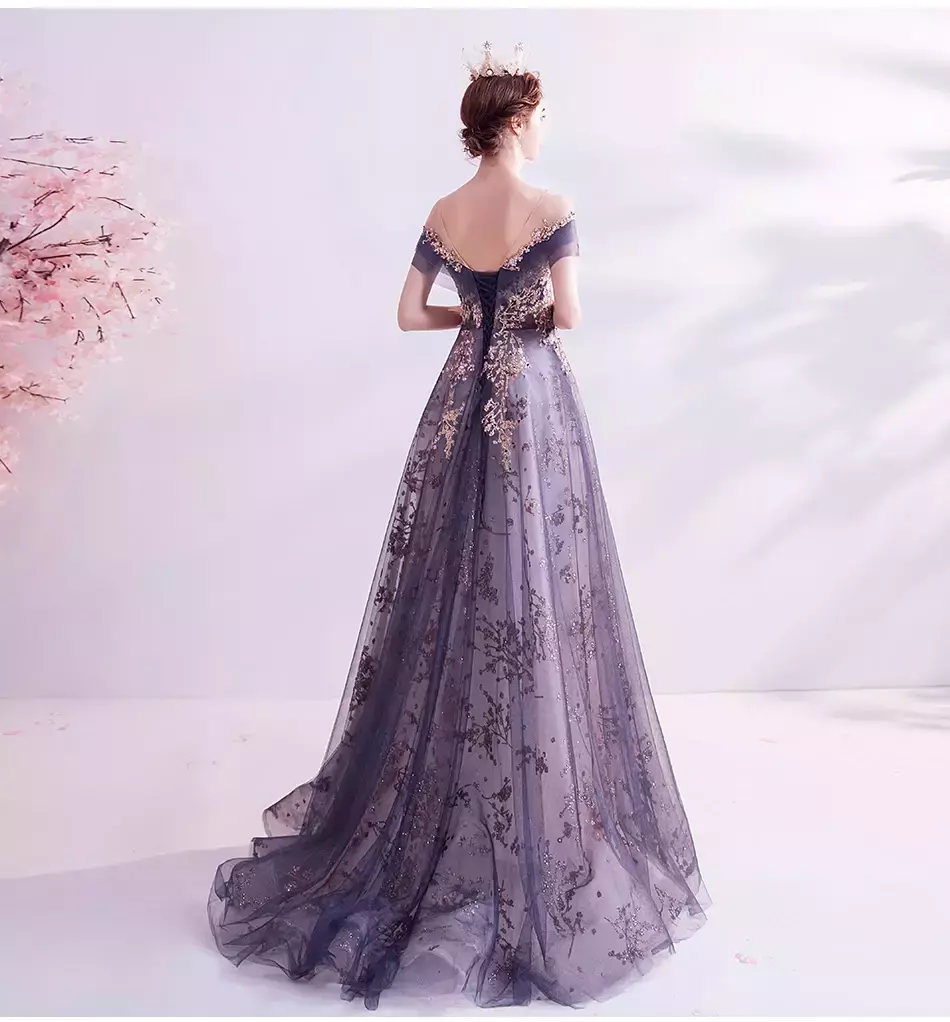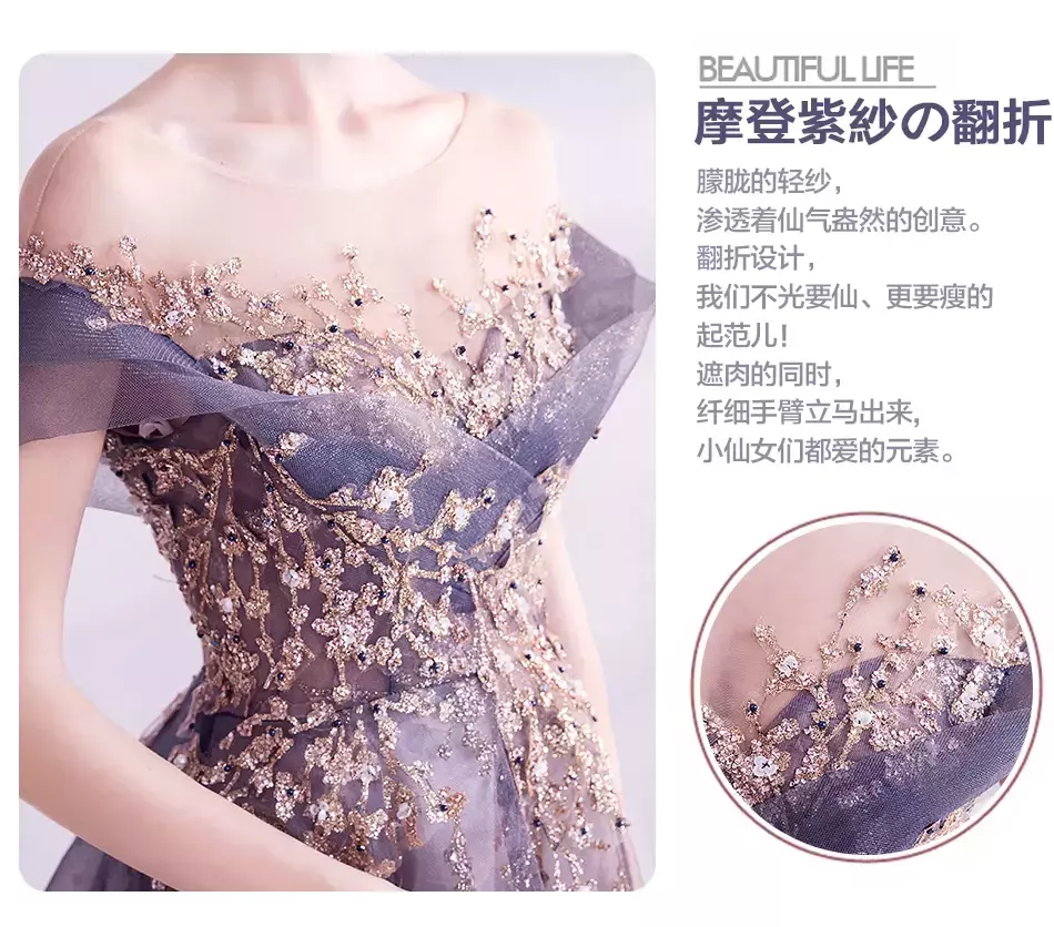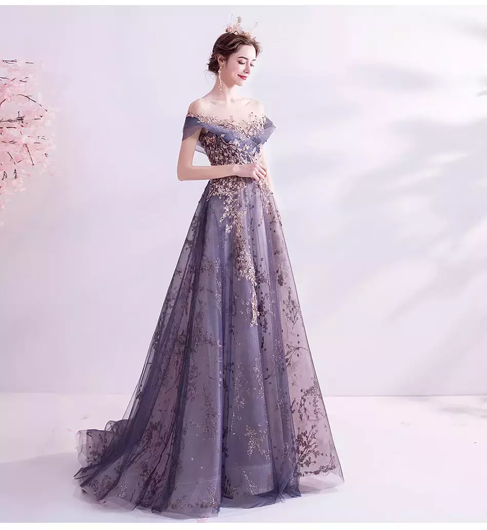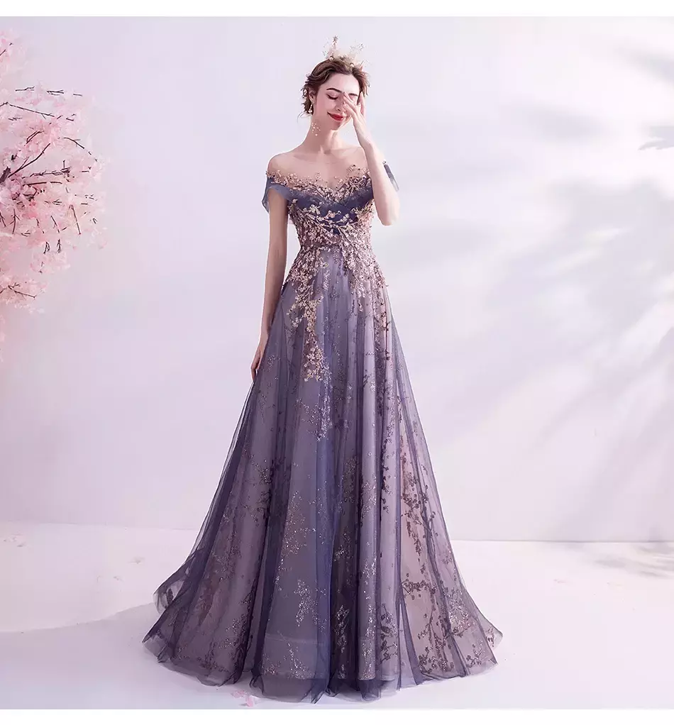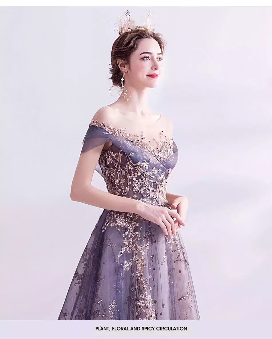 Palavras-chave: vestidos de noite femininos de luxo, vestidos roxos, reunião anual, aniversário, casamento, vestidos elegantes, moda festa feminina.